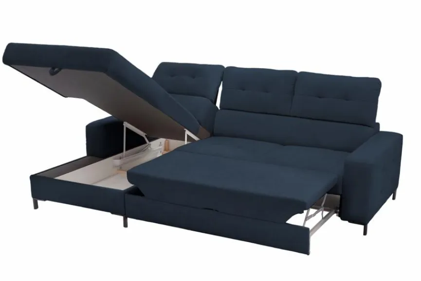 - Inkl. Bettfunktion durch Frontauszug im 2-Sitzer und Stauraum im Longchair