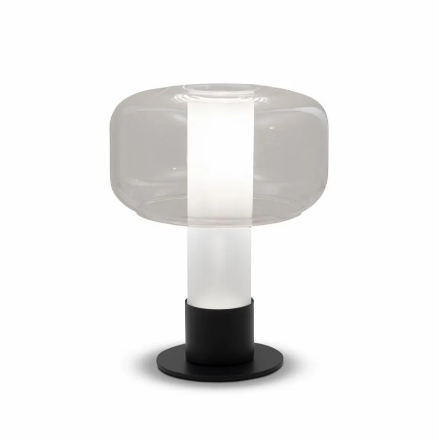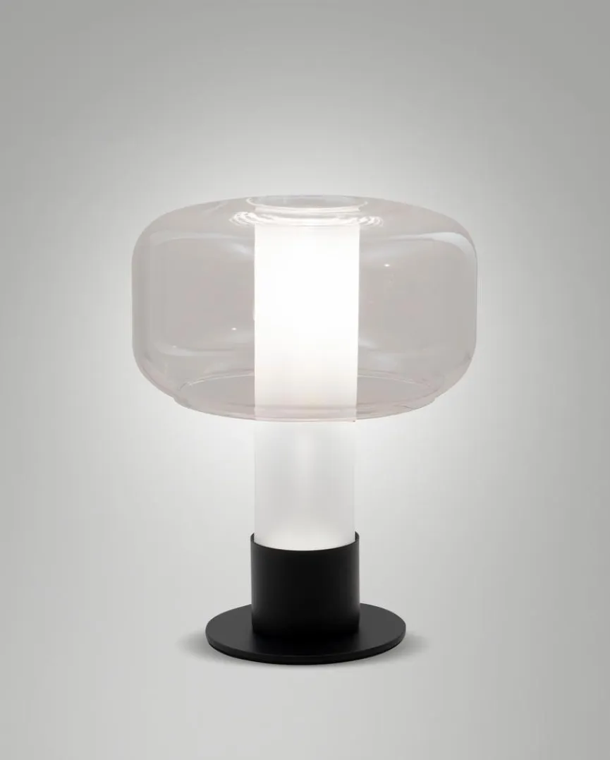 Die Tischleuchte Flick aus dem Hause FABAS lenkt mit einem futuristisch anmutenden Design die Blicke auf sich. Ein beleuchteter Glaszylinder und ein rundlich geformter Schirm bestimmen den Look dieser Tischlampe. Zu Möbeln sowie zu Dekoelementen im puristischen Stil passt die Tischleuchte Flick zum Beispiel außerordentlich gut.