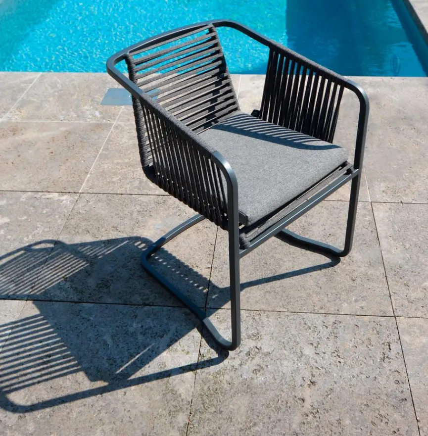 Mit Gartenmöbeln aus Edelstahl und Rope liegen Sie voll im Trend. Das Zusammenspiel der beiden Materialien ist nicht nur ein optisches Highlight. Die Bespannung aus Rope (Seil) sorgt für hervorragenden Sitzkomfort ohne Einschränkungen bei der Witterungsbeständigkeit. Das bewährte Edelstahl eignet sich dank seinen robusten Eigenschaften hervorragend für Gartenmöbel. Das neue und innovative Material Rope überzeugt ebenfalls sowohl optisch als auch durch Farbechtheit, UV-, Wasser- und Frostbeständigkeit und langer Haltbarkeit.
