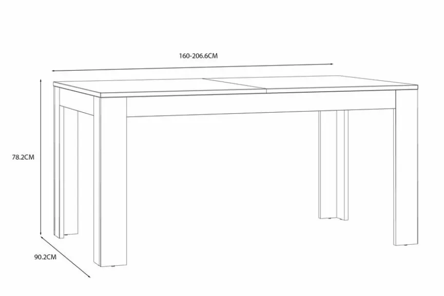 - Die Tischplatte ist auf 206,60 cm ausziehbar