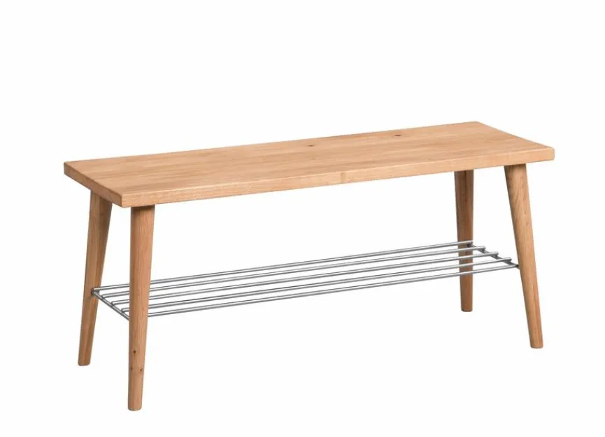 Mit der Garderobenbank Galtür haben Sie die ideale Umkleidebank für Ihr Vorzimmer. Sie besticht durch ihre Ausführung in Massivholz und die Ablage in Edelstahloptik. Aufgrund ihrer Größe passt die Garderobenbank Galtür auch in kleinere Nischen. Dennoch bietet diese Umkleidebank genug Platz, um sich die Schuhe bequem auszuziehen und gleich auf die Ablage zu stellen.