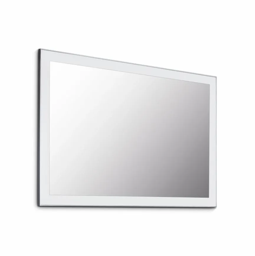 - Front aus Glas in Optiweiß auf Spanplattenfüllung mit umlaufenden alufarbigen Rahmen