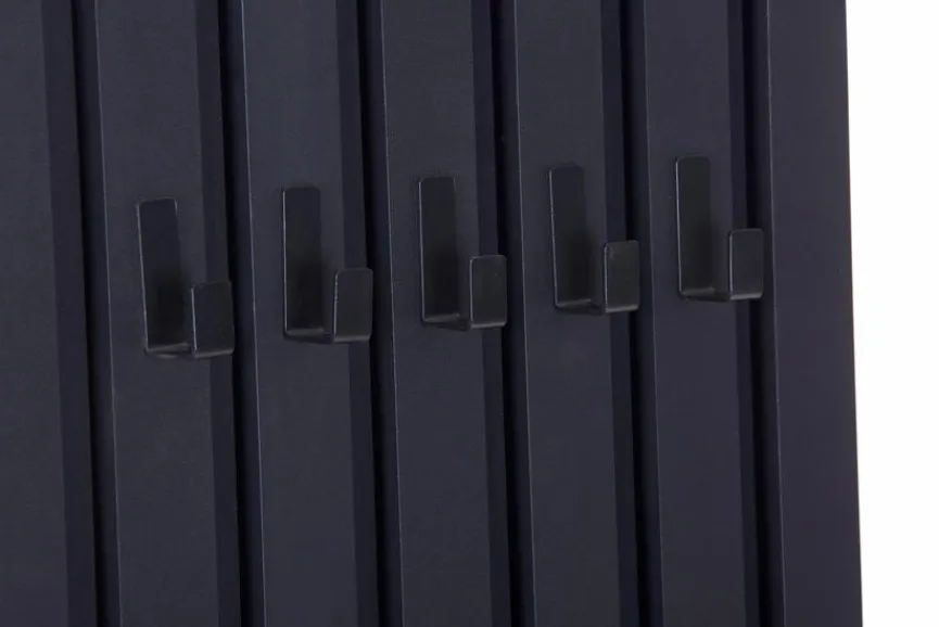 Die Wandgarderobe Jim kombiniert stilvolles Design mit praktischer Funktionalität. Dank der stabilen Haken und ihrer kompakten Größe ist die Wandgarderobe Jim perfekt auch für kleine Eingangsbereiche geeignet und bietet dennoch ausreichend Platz für Jacken, Taschen und Accessoires. Das minimalistische Industrie-Design der Garderobe fügt sich mühelos in jedes moderne Zuhause ein und sorgt für Ordnung im Alltag.
