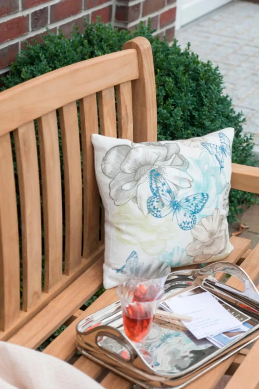 Holzmöbel sind die Klassiker unter den Gartenmöbeln. Liebhaber des langlebigen und flexiblen Naturmaterials schätzen seine warme Ausstrahlung, die für Gemütlichkeit, Robustheit und zeitlose Eleganz steht. Und wenn Sie den geliebten Möbeln dann doch die intensive Nutzung ansehen, kann das Holz leicht angeschliffen werden und die Möbel erstrahlen wieder in neuem Glanz. Das Besondere an recyceltem Teak ist sein ganz eigener Charakter und die natürlichen Gebrauchsspuren, die das Holz aufweist – Individualisten werden begeistert sein. Zudem ist Teak aufgrund des gespeicherten Gemisches aus Ölen und Kautschukbestandteilen nahezu unverrottbar. Auch Kälte, Hitze, Regen und selbst Meerwasser können dem Holz nichts anhaben.