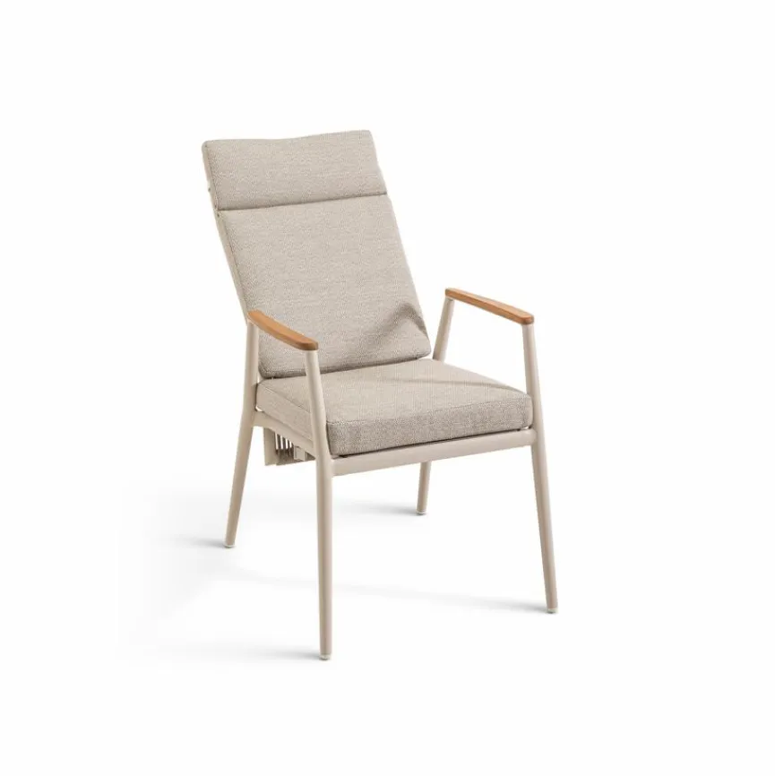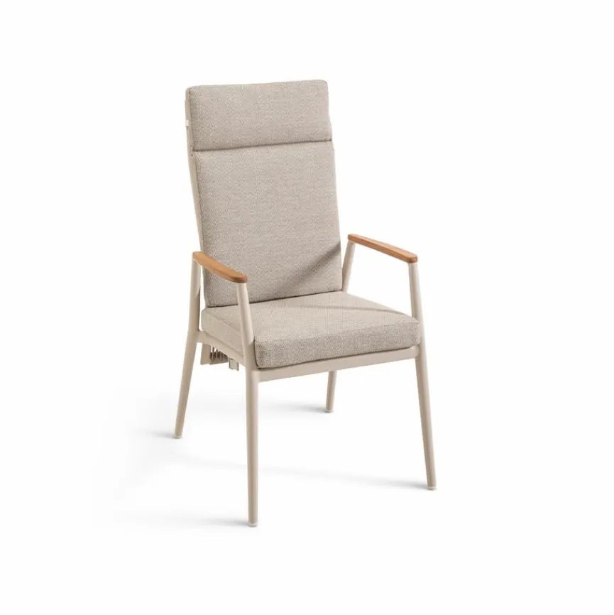 - Gestell aus Aluminium in creamy mit Teakarmlehnen