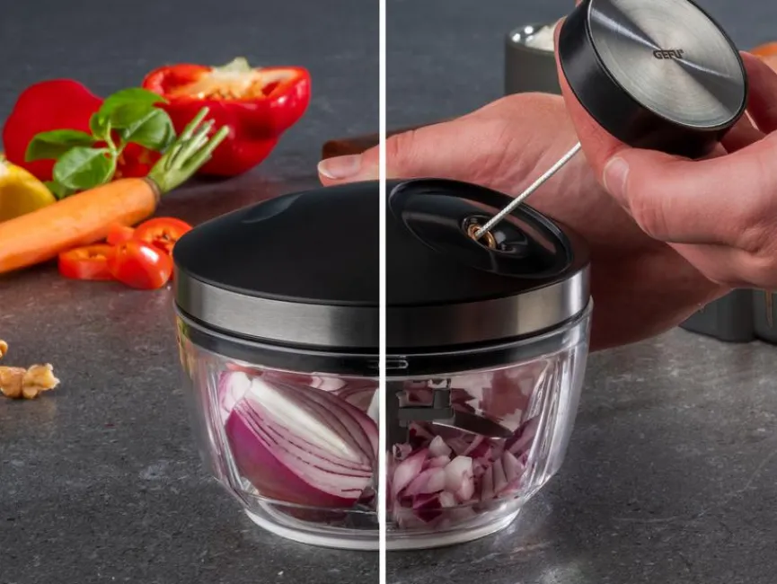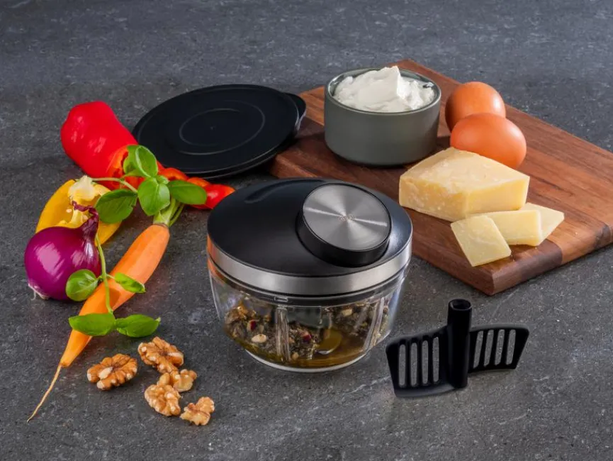Ob in der Küche oder beim Camping – der Multizerkleinerer Zizo von GEFU bietet Ihnen maximale Effizienz ganz ohne Strom. Dank seines ausgetüftelten Mechanismus zerkleinert, mischt und püriert er ohne großen Kraftaufwand Nüsse, Obst, Gemüse und vieles mehr im Handumdrehen. Mit dem Multizerkleinerer Zizo sparen Sie Zeit und Energie.