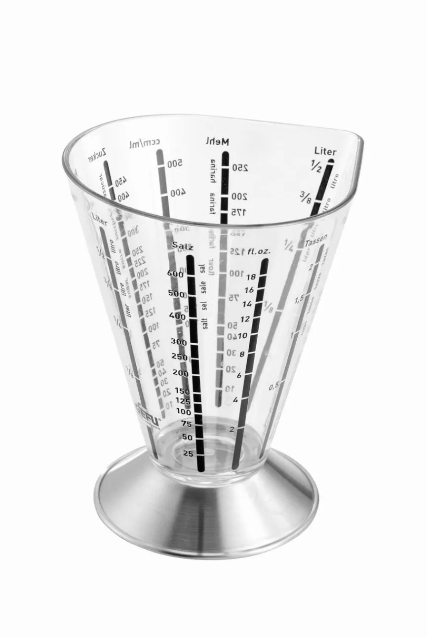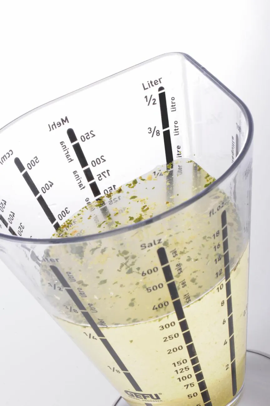Mit dem Messbecher Saturas von GEFU gelingt es Ihnen spielend, die Zutaten für Ihre Backwaren, Desserts und Dressings perfekt zu dosieren. Darüber hinaus erhalten Sie ein stylisches Accessoire, das Ihre Kücheneinrichtung stilvoll komplettiert. Ob Mehl, Zucker, Würzmischungen oder Flüssigkeiten – Ihr GEFU Messbecher Saturas misst sie alle souverän ab.