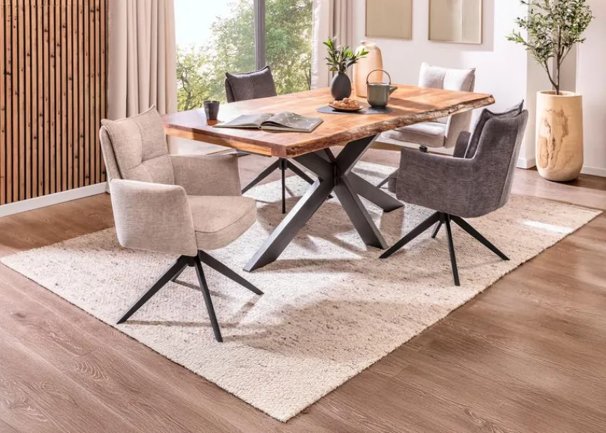 Der G+K Esstisch Kingman 200×100 cm vereint rustikale Eleganz mit modernem Design. Die ausdrucksstarke Tischplatte und das markante Untergestell sorgen für Präsenz im Raum. Ob als stilvoller Esszimmertisch oder als Blickfang im Wohnbereich – der Esstisch Kingman 200×100 cm überzeugt durch Authentizität und Charakter.