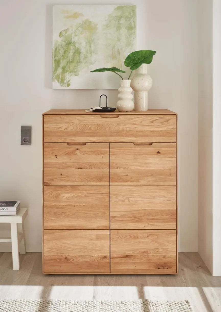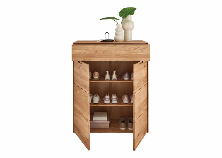 Kreieren Sie in Ihrem Zuhause ein Ambiente von eleganter Gemütlichkeit mit dem Schuhschrank Stockholm von G+K. Er punktet durch geschmackvolles Design, hochwertige Verarbeitung und eine natürliche Ausstrahlung. Hinter seinen beiden Türen bietet der Schuhschrank Stockholm reichlich Platz für viele Schuhpaare, und in der Schublade lässt sich Zubehör wie Putzzeug und Bürste aufbewahren.