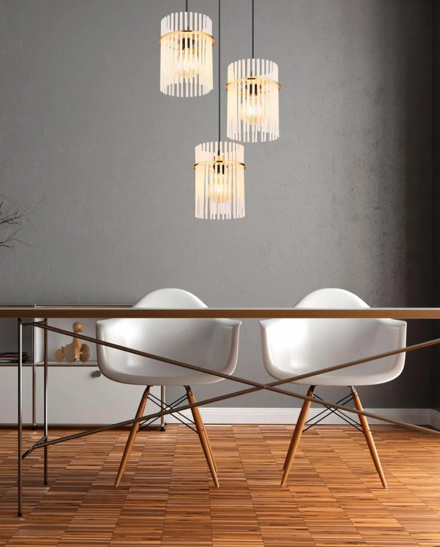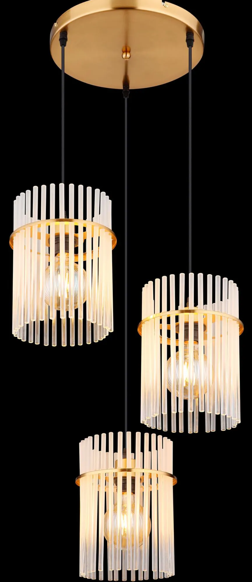 Die Pendelleuchte Gorley aus dem Hause Globo verkörpert stilvolle Eleganz und bringt extravaganten Charme mit sich. Aus Glasstäbchen gefertigte, zylinderförmige Schirmchen verleihen der Pendellampe ihren besonderen Chic. Sehr gut passt die edle Pendelleuchte Gorley zum Beispiel zu Einrichtungsobjekten im Vintage-Design in Sinne der Sechziger- oder Siebzigerjahre.