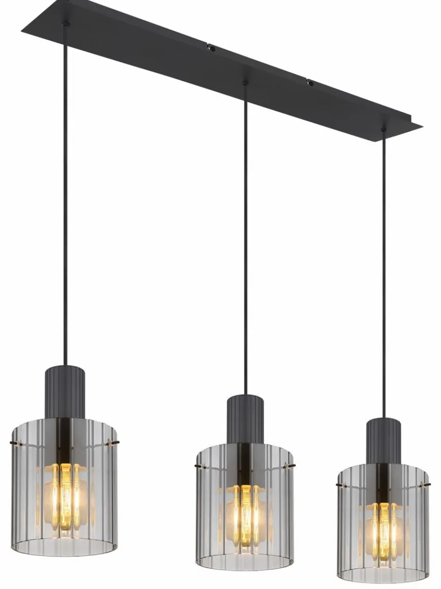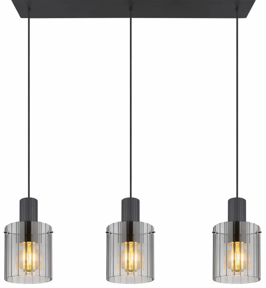 Die Pendelleuchte Tiril von Globo überzeugt durch ihr klassisches Design, das sich harmonisch in unterschiedliche Wohnkonzepte einfügt. Zum Blickfang wird diese Pendellampe durch drei ansprechende Lampenschirme aus Rauchglas. Damit spendet die Pendelleuchte Tiril gedämpftes, warmes Licht, das für ein gemütliches Ambiente am Esstisch sorgt und jeden Gast zum Verweilen einlädt.