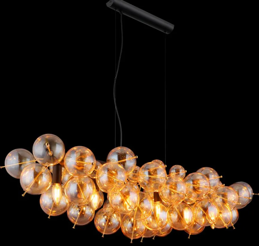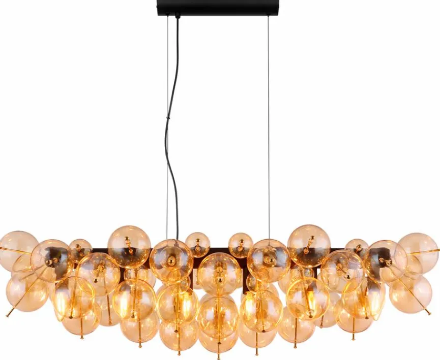 Die Pendelleuchte Udo aus dem Hause Globo bringt eine reizvolle Prise Extravaganz und Glamour mit sich. Etliche Glaskugeln, die für funkelnde Lichteffekte sorgen, machen diese Pendellampe zum faszinierenden Eyecatcher in Ihrem Domizil. In ein modernes Esszimmerambiente mit luxuriösen Akzenten passt die Pendelleuchte Udo geradezu perfekt.