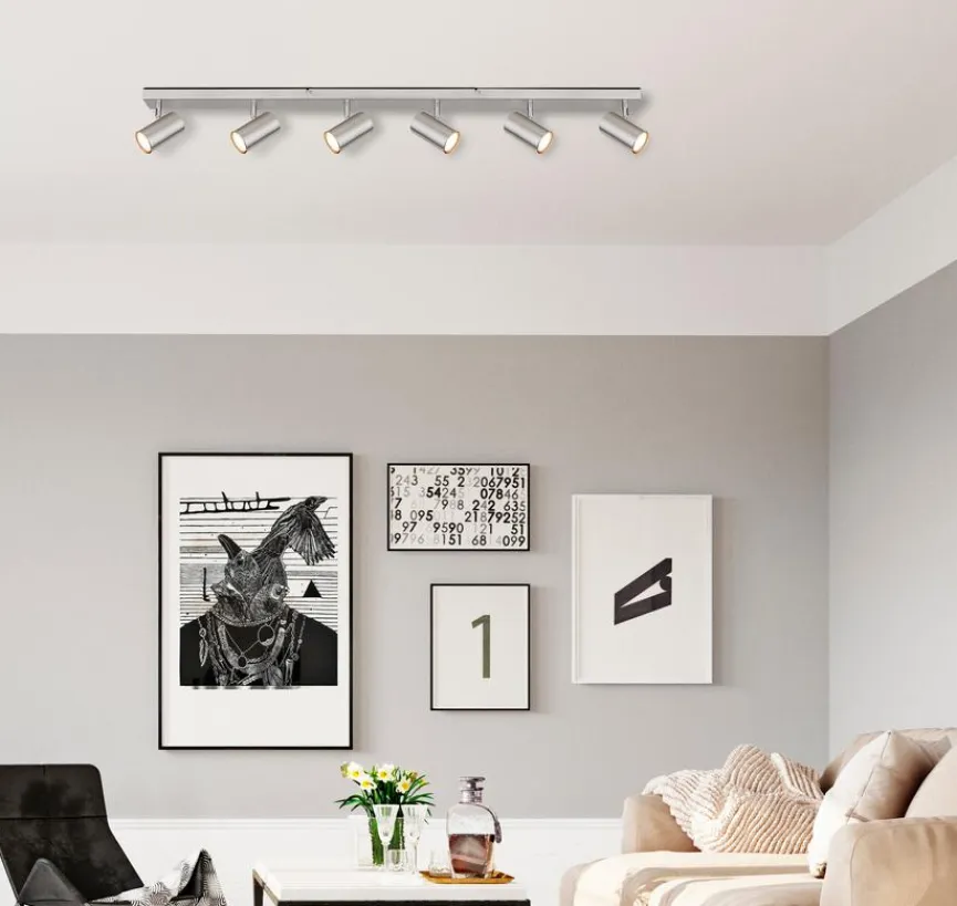 Der Strahler Robby aus dem Hause Globo steht für zeitgemäße Sachlichkeit. Ein schmaler, rechteckiger Sockel und sechs zylinderförmige Spots, die schwenkbar gestaltet sind, bestimmen hier das Erscheinungsbild. Zum gezielten Ausleuchten einer Wand mit diversen Dekos bietet sich der Strahler Robby zum Beispiel wunderbar an.