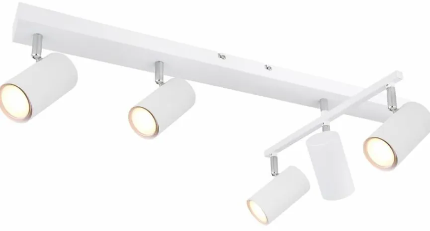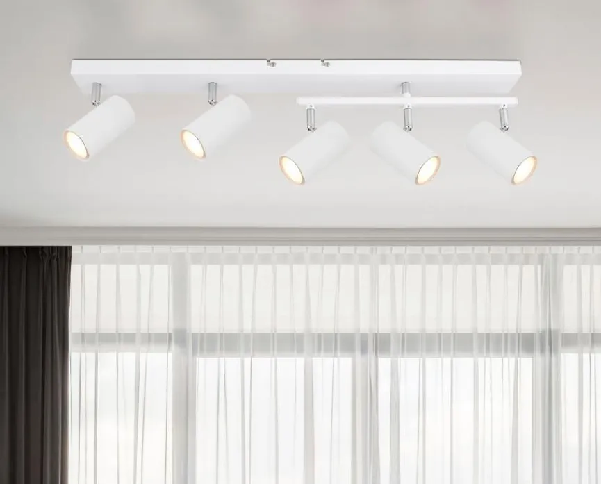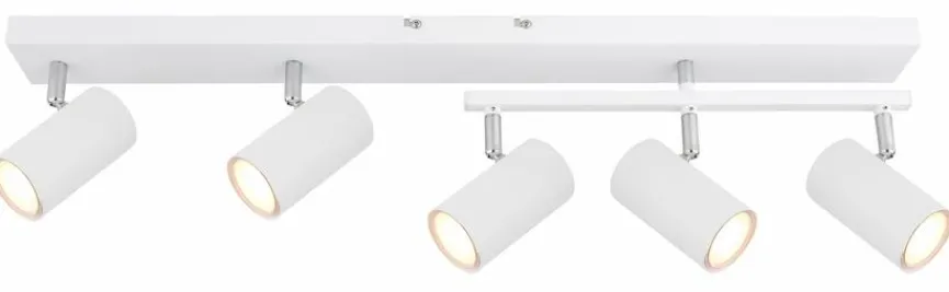 Der Strahler Robby der Marke Globo begeistert durch sein tolles Design. An einer rechteckigen Deckenhalterung sind fünf Spots befestigt, die einzeln justierbar sind und mit denen bestimmte Möbel oder Bereiche Ihres Wohnzimmers besonders hervorgehoben werden können. Der Strahler Robby ist eine wundervolle Ergänzung Ihres Wohnbereiches und fügt sich mühelos in jeden Einrichtungsstil ein.