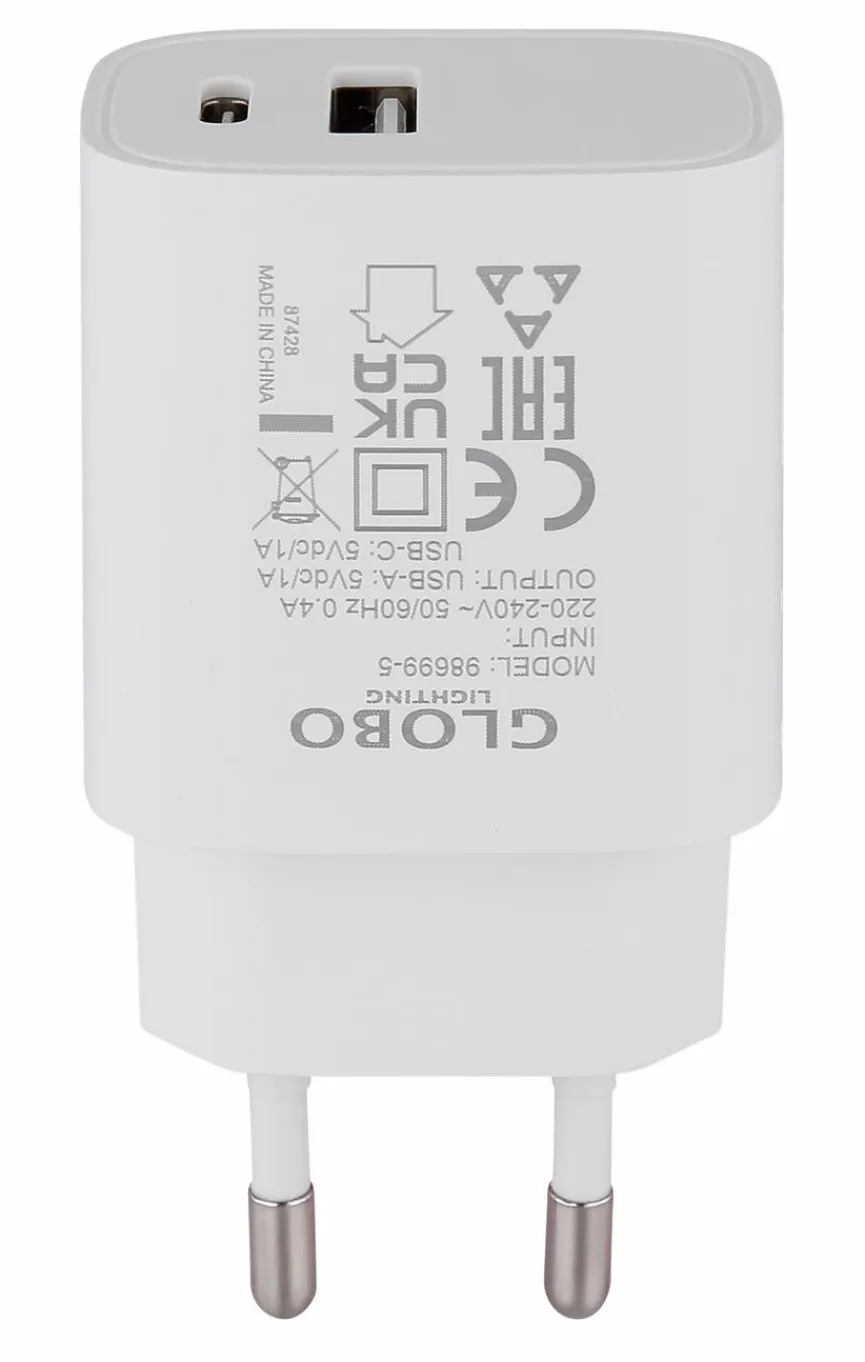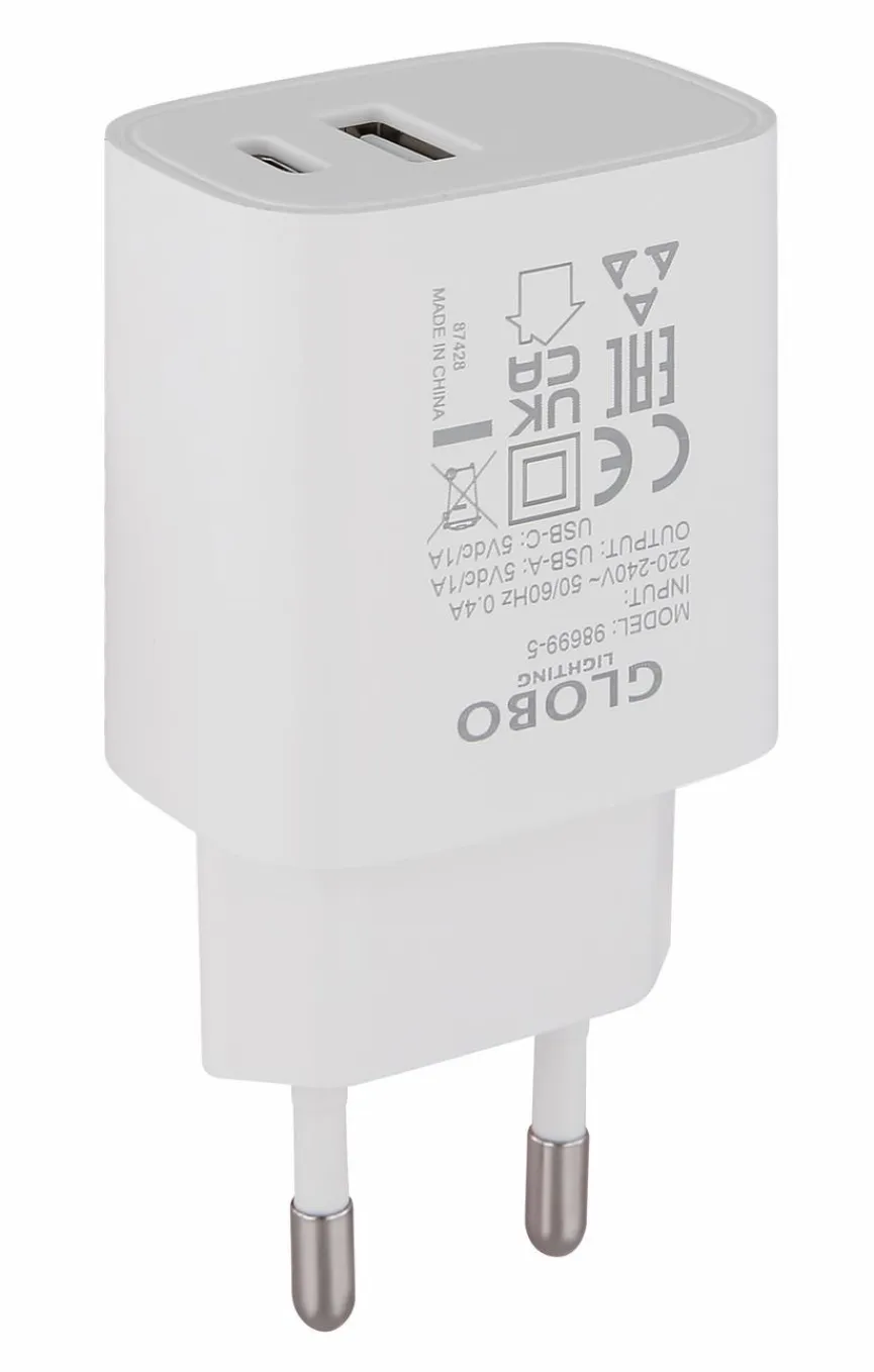 Der Netzstecker USB A und C von Globo versorgt Ihre Geräte zuverlässig mit Energie und macht das Aufladen besonders komfortabel. Durch die Kombination aus zwei Buchsen können Sie mehrere Geräte gleichzeitig anschließen und profitieren von einer flexiblen Nutzung. Dieses praktische Netzteil überzeugt durch seine kompakte Bauweise und daher is der Netzstecker USB A und C ein unverzichtbarer Begleiter für Alltag und Reise.
