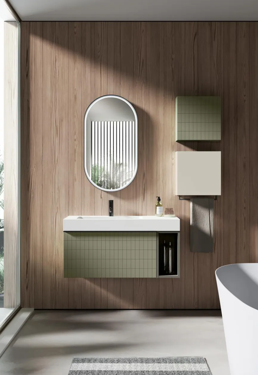- Hängeschrank mit 1 Türe und 1 Einlegeboden mit der Fronttype Grid in salbeigrün matt lackiert