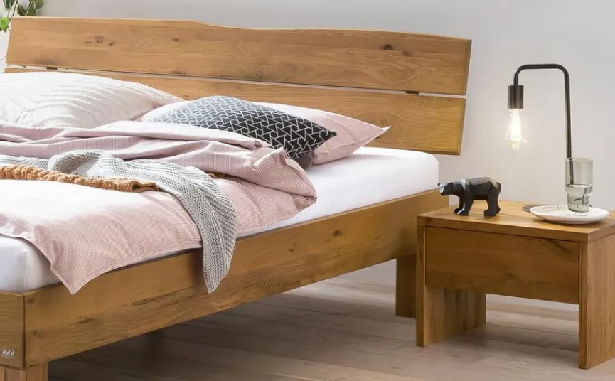 Das Massivholzbett Renzetti von HASENA bringt eine schöne Note Rustikalität mit sich. Geölte Wildeicheoberflächen und eine herausgearbeitete Baumkante sorgen für Gemütlichkeit und für ein naturverbundenes Flair im Raum. Zudem bietet Ihnen das Massivholzbett Renzetti ein hohes Maß an Stabilität.