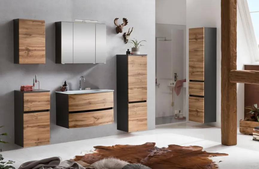Tragen Sie mit dem Waschtisch-Set Malmö aus dem Sortiment von Held-Möbel schnell zu hygienischen Zuständen im Sanitärbereich bei. Zudem können Sie in dem elegant designten Möbelstück viele Utensilien verwahren. So sorgt das Waschtisch-Set Malmö sowohl für eine geschmackvolle Wohnatmosphäre als auch für Ordnung im Badezimmer.
