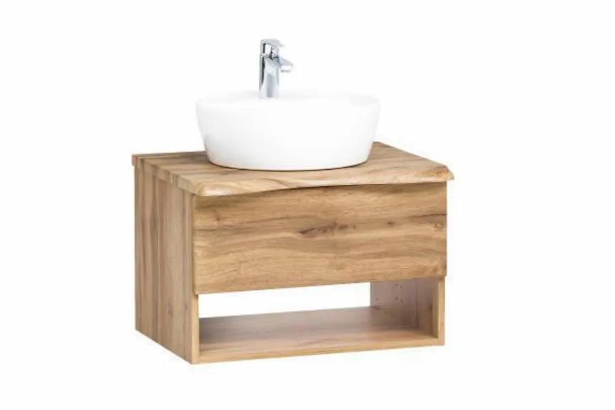 Der Waschtischunterschrank Sion aus dem Hause Held-Möbel begeistert durch eine elegante Optik mit Naturholzcharme. Neben der markanten Baumstammkante überzeugt bei diesem Badezimmerschrank auch die puristische Formensprache. Darüber hinaus bietet der Waschtischunterschrank Sion im Inneren viel praktischen Stauraum für Waschutensilien und andere Gegenstände.