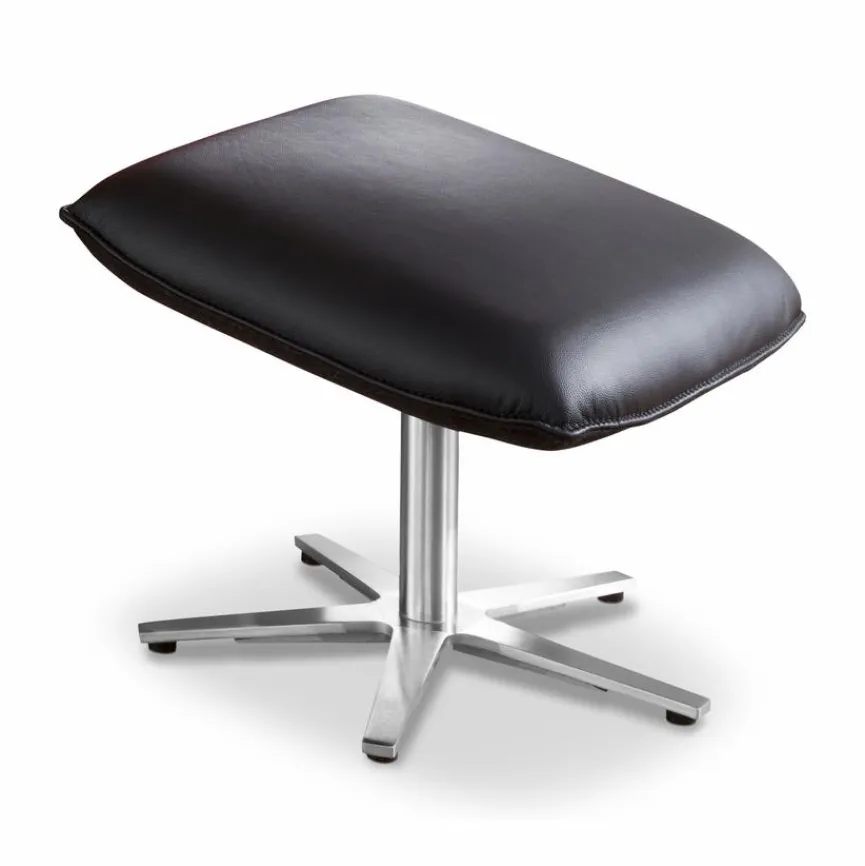 - Bezug der Hockeroberseite aus Leder (24 Longlife) in black, Bezug der Hockerunterseite aus Stoff (18 Salino) in black, Sternfuß Edelstahloptik gebürstet (U)