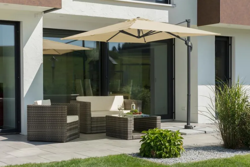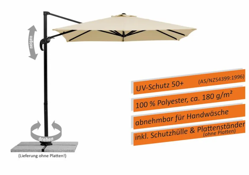 - Inkl. Plattenständer für Wegeplatten 50 x 50 x 5 cm (Lieferung ohne Platten). Einteiliger Schirmstock 40 x 55 cm