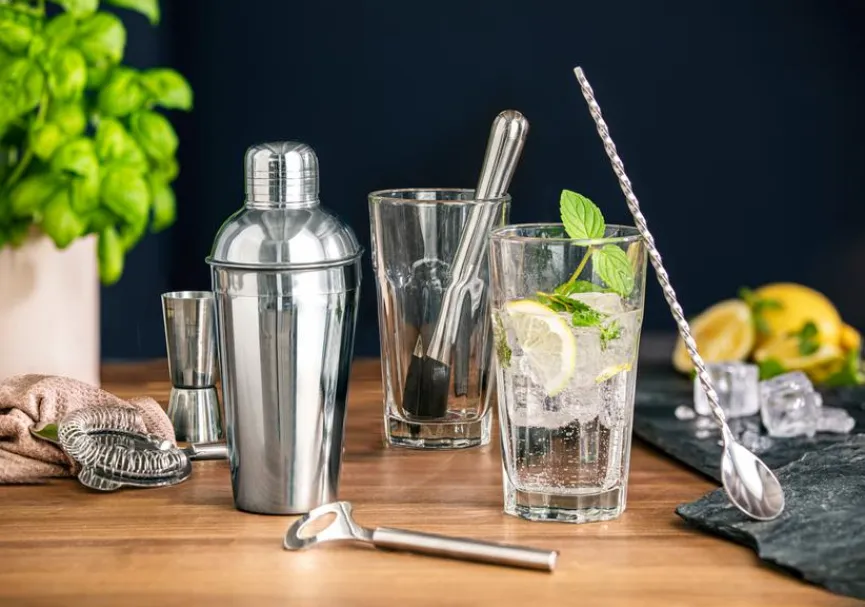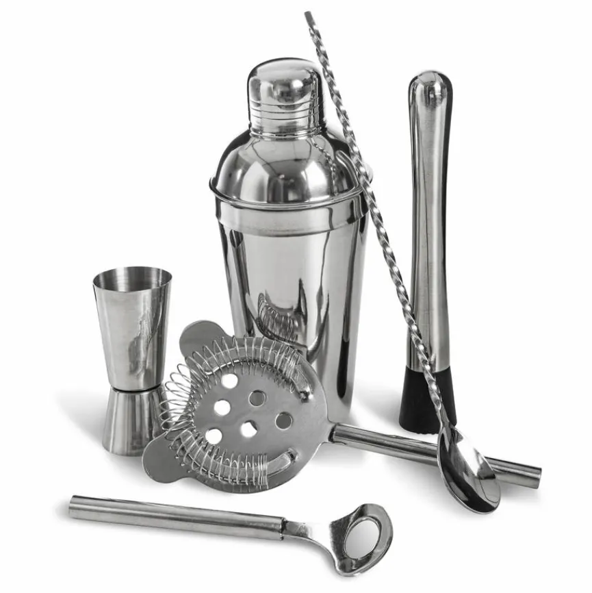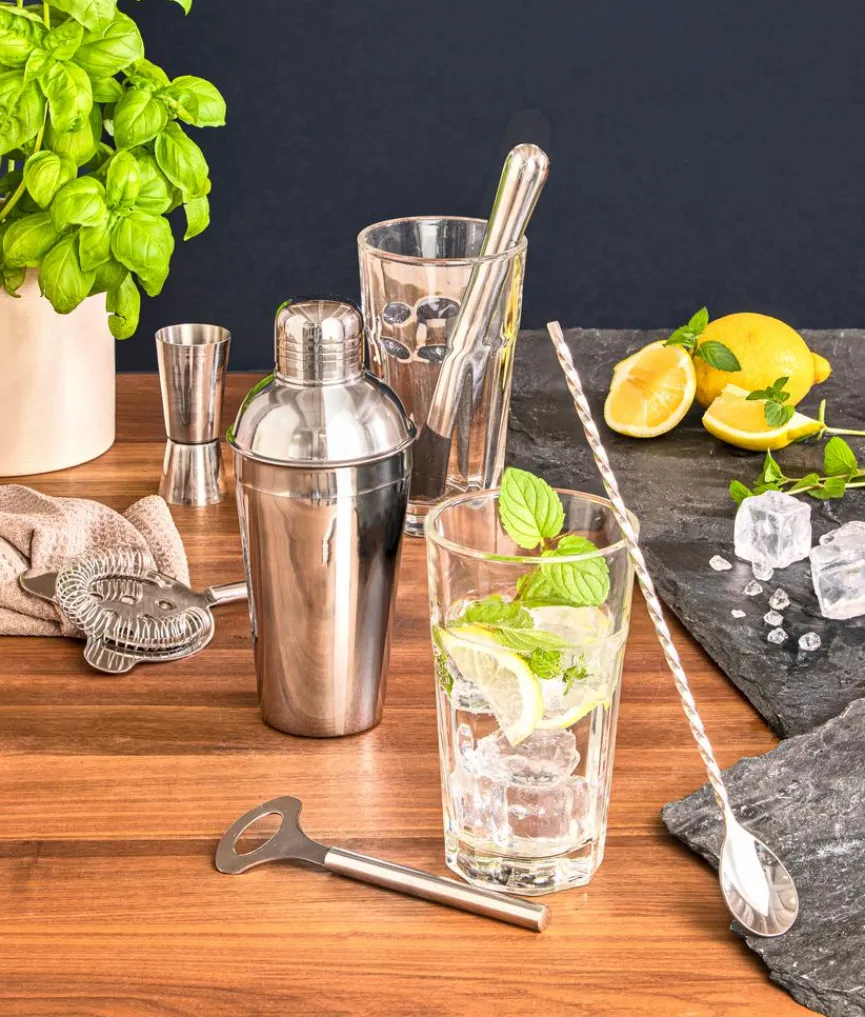 Überraschen Sie Ihre Gäste mit köstlichen Cocktails, die Sie gekonnt mit dem Bar-Set 6tlg. mixen. Es beinhaltet alles, was Sie zum Kreieren einer perfekten Getränkemischung benötigen, vom Shaker über den Messbecher, Barkeeperlöffel, Trichter bis zum Stößel. Das Bar-Set 6tlg. zeichnet sich durch ein edles Design aus und macht das Getränkemixen zu einem ideenreichen Vergnügen.
