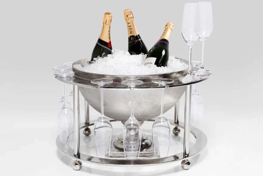 Der Flaschenkühler Champagne Time 61502 von KARE ist ein sehr praktisches und dekoratives Accessoire, das sich selbstverständlich nicht nur zum Kühlen von Champagner eignet. Auch Weißwein, Sekt oder Prosecco lassen sich im Flaschenkühler Champagne Time 61502 auf die entsprechende Temperatur bringen. Füllen Sie dazu einfach Eiswürfel oder Crushed Ice in die Schale des KARE Kühlers und legen Sie die gewünschten Flaschen hinein.