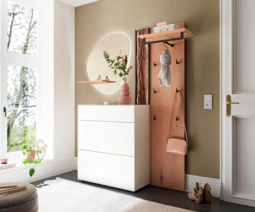 Die Garderobenkombination Salvo von Hartman vereint Funktionalität und elegantes Design in perfekter Balance. Durchdachte Aufteilungen schaffen Platz für Jacken, Taschen und Schuhe. Mit der Garderobenkombination Salvo gelingt ein harmonisches Gesamtbild, das Ihren Eingangsbereich freundlich und aufgeräumt erscheinen lässt. So wird das tägliche Ankommen zum angenehmen Erlebnis.
