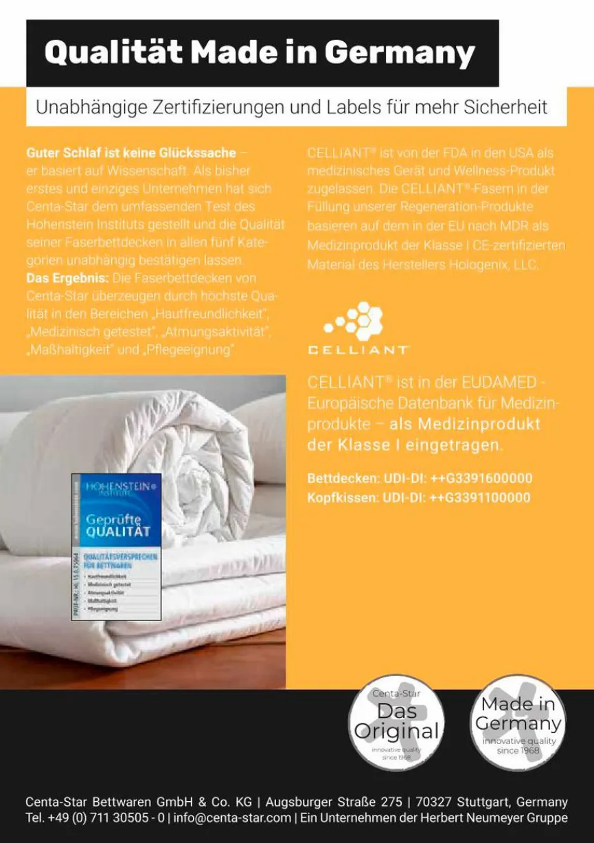 - Für Hausstauballergiker geeignet, Made in Germany