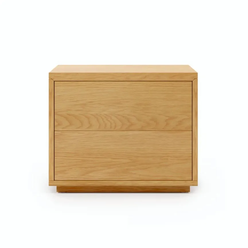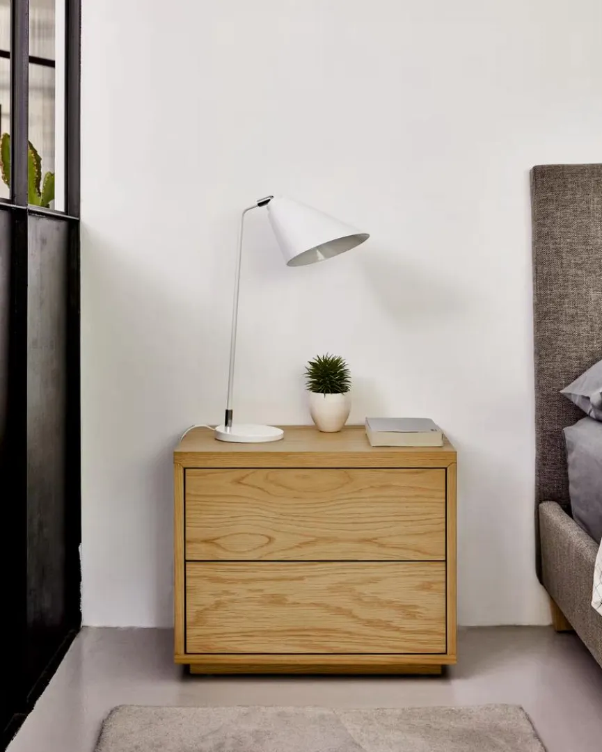 Der Nachttisch Abilen der Marke Kave Home überzeugt mit seinem reduzierten Design in Holzoptik, wodurch er problemlos zu unterschiedlichen Wohnkonzepten passt. Hinter zwei grifflosen Schubkästen bietet Ihnen die Nachtkonsole Platz für Nützliches sowie Persönliches und sorgt dabei für mehr Ordnung. Besonders harmonisch wirkt der Nachttisch Abilen in Kombination mit schnörkellosen Möbelstücken in Naturoptik.
