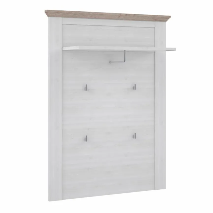 Mit dem Paneel Illopa aus dem Hause FORTE können Sie Ihren Eingangsbereich im beliebten Landhausstil einrichten. Das Garderobenpaneel wird an der Wand montiert und nimmt daher sehr wenig Platz in Anspruch. Dennoch bietet das Paneel Illopa Ihnen und Ihren Gästen viel Platz für Jacken, Hüte und Co.