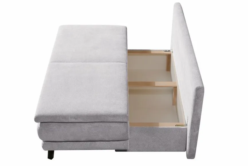 - Inkl. Schlaffunktion durch umklappbare Rückenlehne, Bettkasten und Hubbeschlag