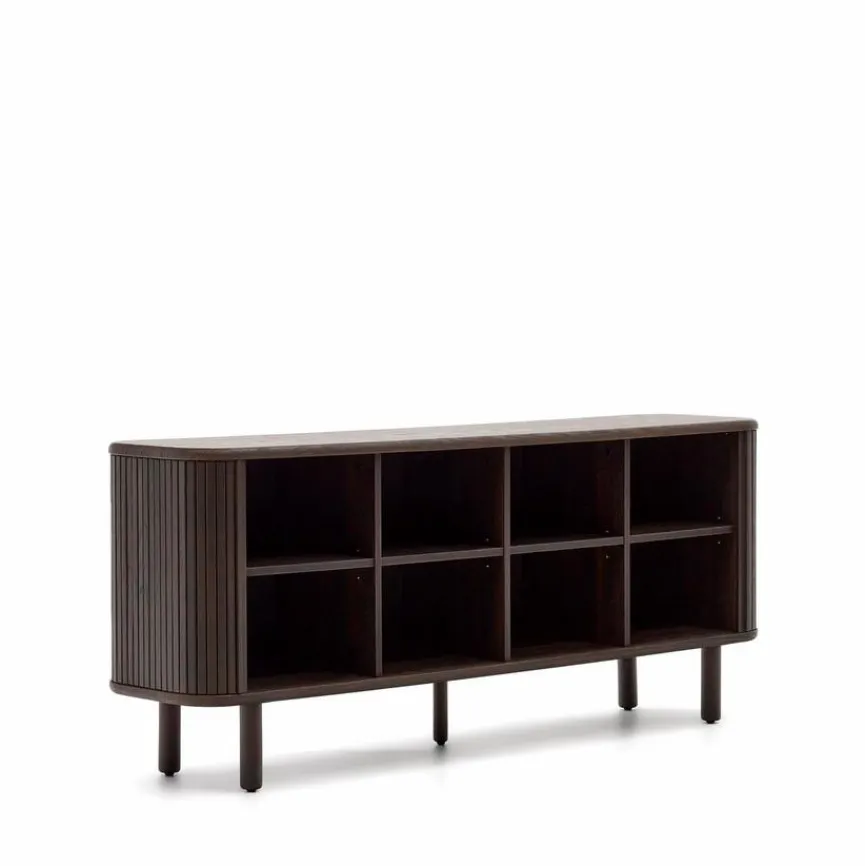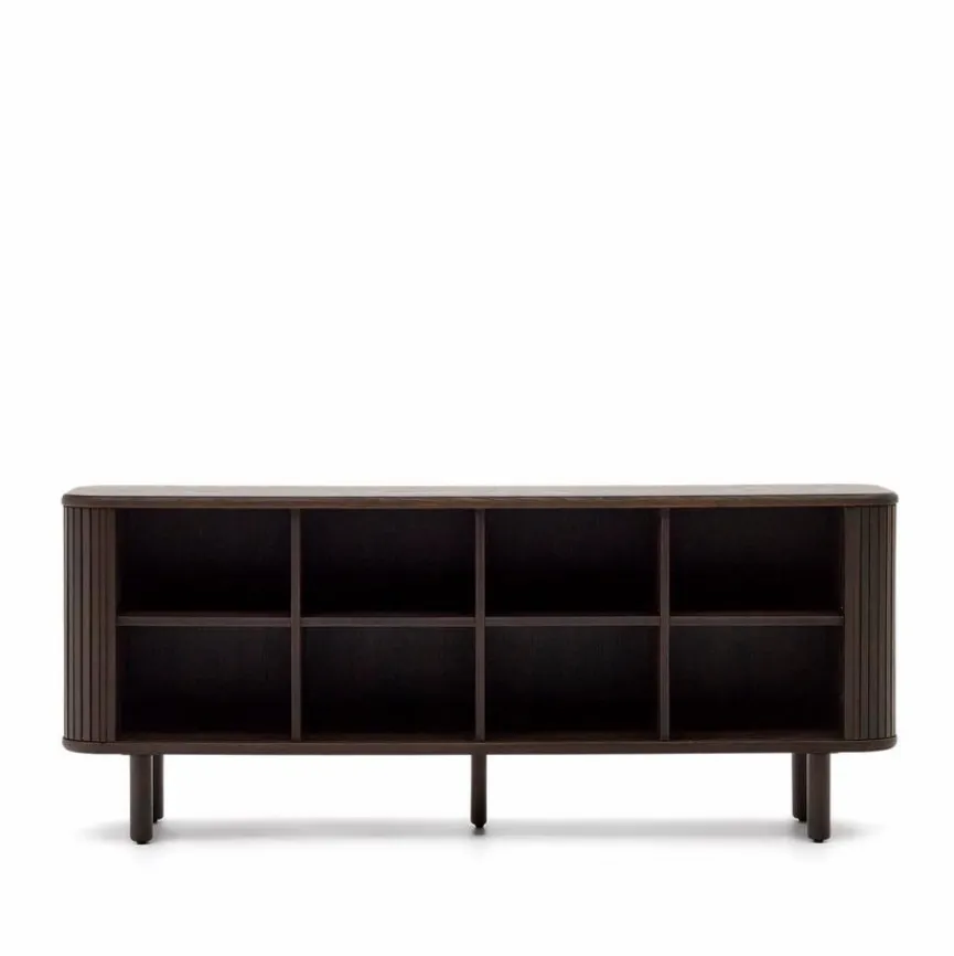 Mit einer Kombination aus nostalgischem Look und modernem Design überzeugt das Sideboard Mailen von Kave. Die abgerundete Form und die attraktiven Lamellentüren verleihen der Kommode eine warme, harmonische Ausstrahlung. In seinem Inneren bietet das Sideboard Mailen in insgesamt acht Fächern viel Stauraum für wertvolle Dinge, die Sie aufbewahren möchten.