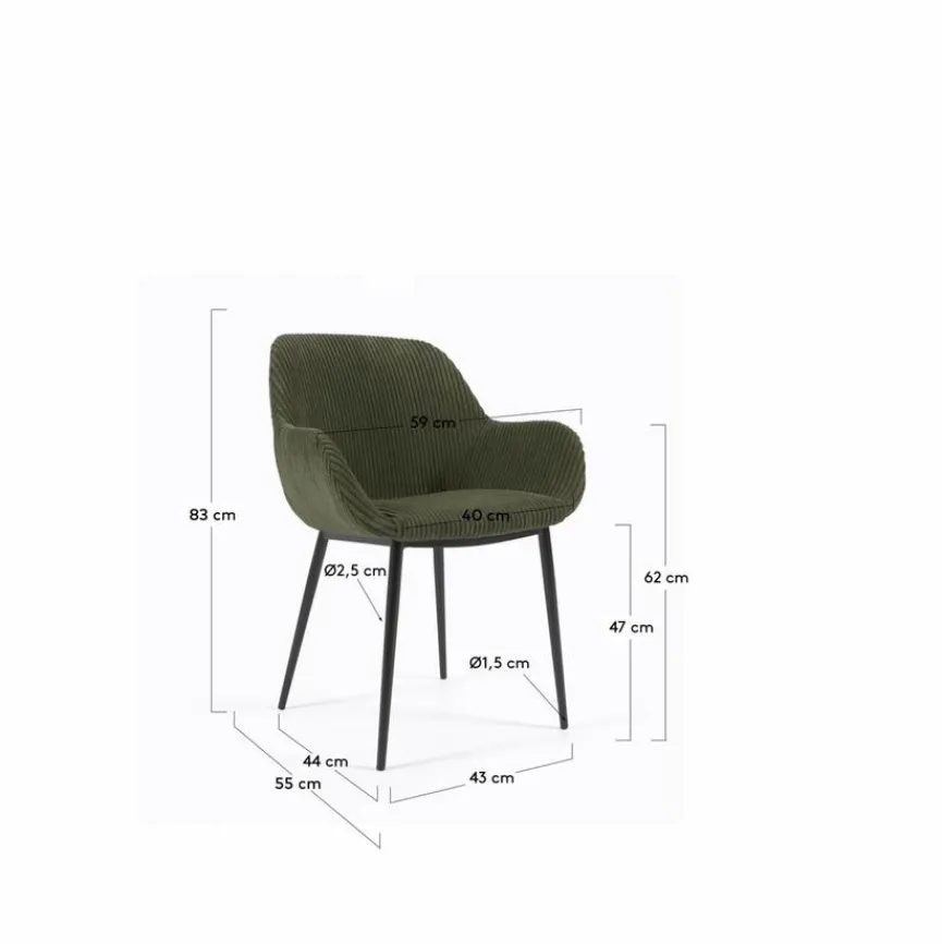 Der Stuhl Konna aus der Möbelmanufaktur Kave Home begeistert mit seiner Formensprache, die eine beschwingte Leichtigkeit und Modernität ausstrahlt. In Sachen Komfort glänzt die ergonomisch geformte Sitzschale mit einer bequemen Schaumstoffpolsterung. Zudem punktet der Stuhl Konna der Marke Kave Home mit einem Bezug aus hochwertigem Cord.
