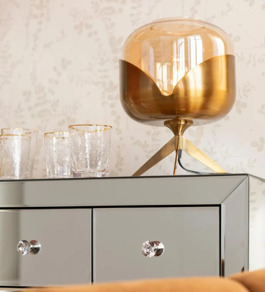 Wenn Sie außergewöhnliches Design lieben, dann ist die Tischleuchte Golden Goblet von der Qualitätsmarke KARE DESIGN wie geschaffen für Sie. Die Tischlampe im angesagten Retro-Look verfügt über eine getönte Glaskugel, die atmosphärisches Licht verströmt. Lassen auch Sie sich vom nostalgischen Charme der Tischleuchte Golden Goblet von KARE DESIGN verzaubern.