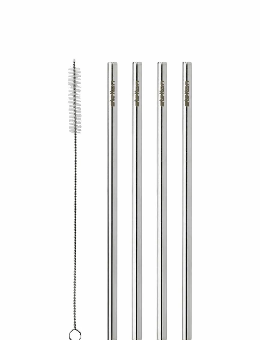Cocktail-Liebhaber und auch Familien lieben den Trinkhalm 4tlg. von Stelton, denn er wertet Longdrinks genauso auf wie leckere Smoothies oder Shakes. Der wiederverwendbare Strohhalm besticht durch sein klassisches, glänzendes Design im Metall-Look mit dem dezent aufgedruckten Logo des Markenherstellers für gehobene Küchenaccessoires. Besonders praktisch ist, dass der Trinkhalm 4tlg. mit einer passenden Bürste geliefert wird, mit der auch das Innere hygienisch gereinigt werden kann.