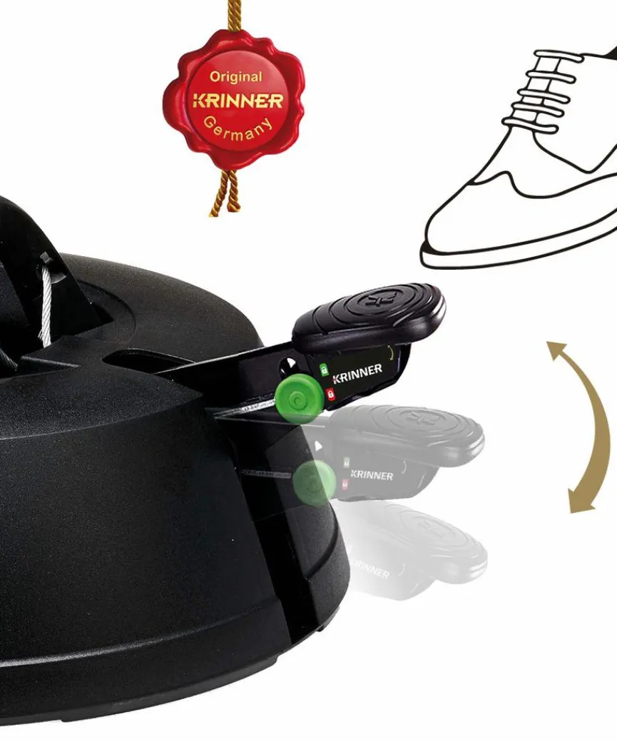 - Durchgehende Seilführung garantiert gleichmäßigen Druck der Klauen auf den Stamm. Baum in den Ständer stellen, Fußpedal treten; fertig!