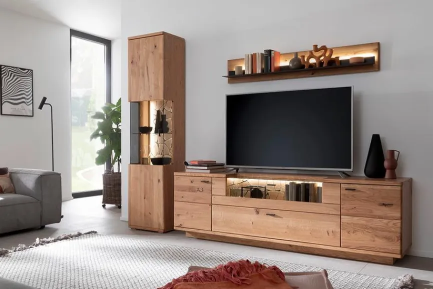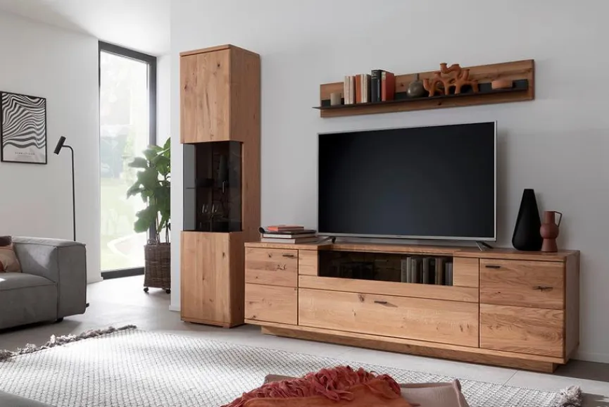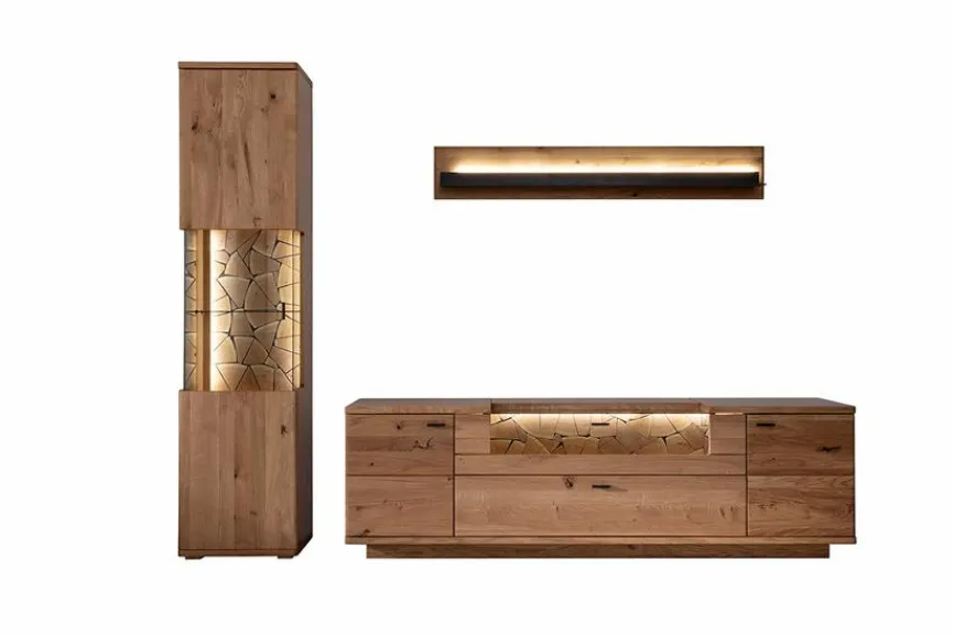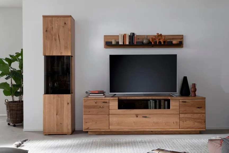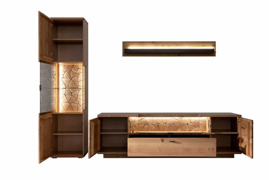 - Wohnwand aus Vitrine, TV-Lowboard, Wandboard