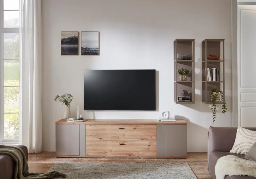 - bestehend aus TV-Lowboard, 2 Hängeregale