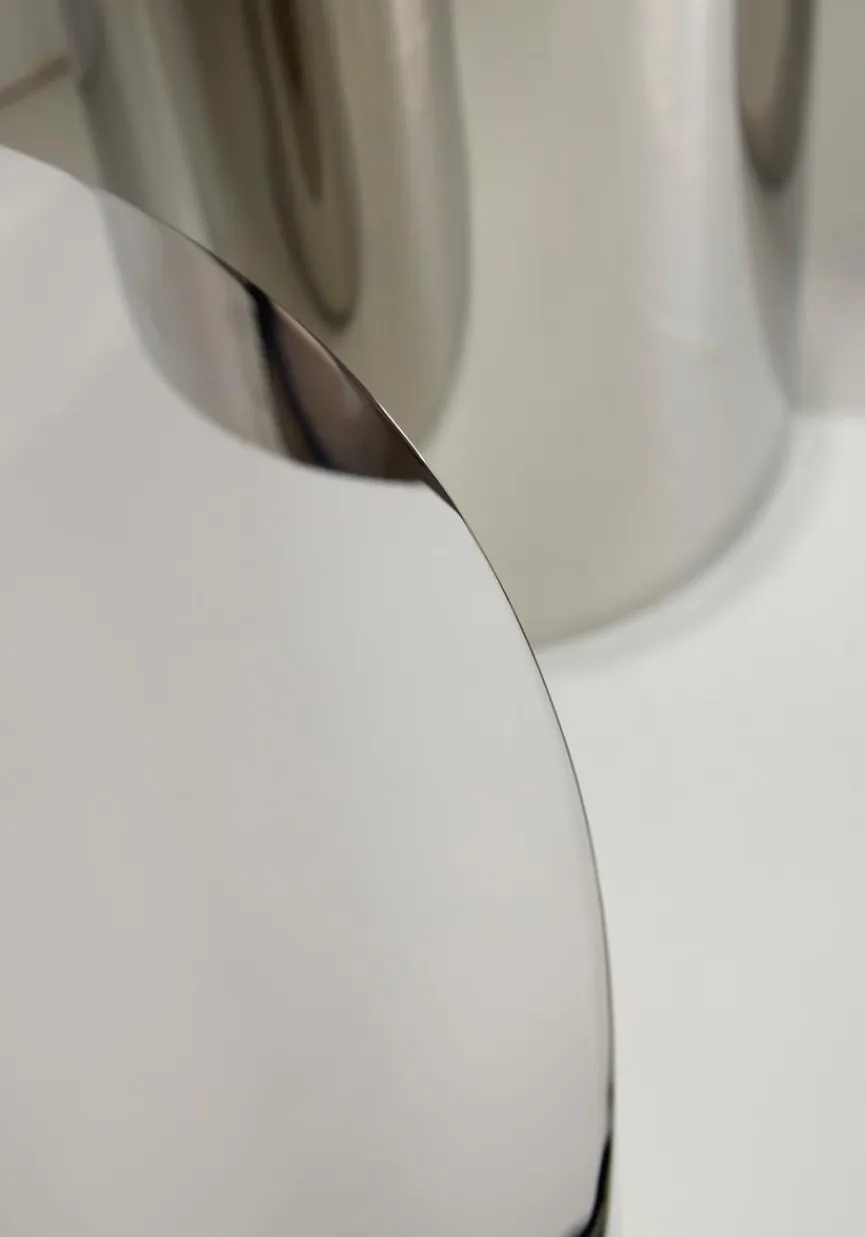 Mit einem minimalistischen Designansatz gefertigt, vereint der Tin Drum Tisch eine klare, zeitlose Silhouette mit vielseitiger Ästhetik. Die durchgehenden, fließenden Linien seiner runden Form strahlen Ruhe aus, während die hochglänzende Oberfläche eine markant moderne Note hinzufügt. Seine reflektierende Oberfläche hebt die Umgebung hervor und macht ihn zu einem vielseitigen Möbelstück, das sich sowohl in minimalistische als auch in ausdrucksstarke Innenräume einfügt. Erhältlich in drei Größen, kombiniert der Tin Drum Tisch modernen Minimalismus mit langlebiger Metallkonstruktion – ideal als Couchtisch, Beistelltisch oder Akzenttisch.