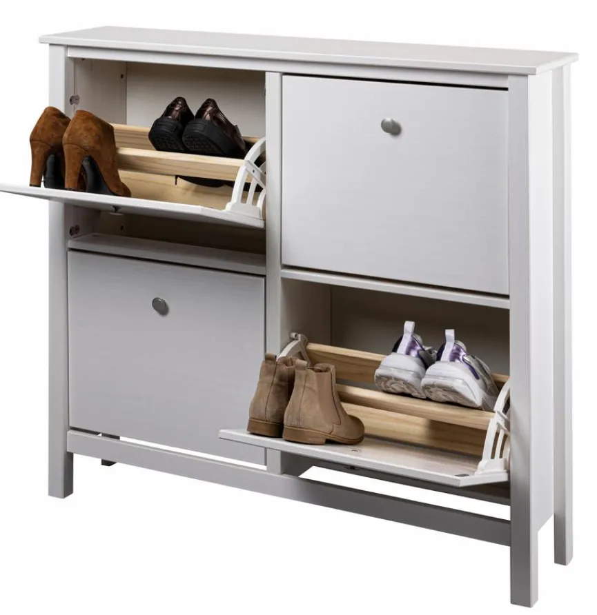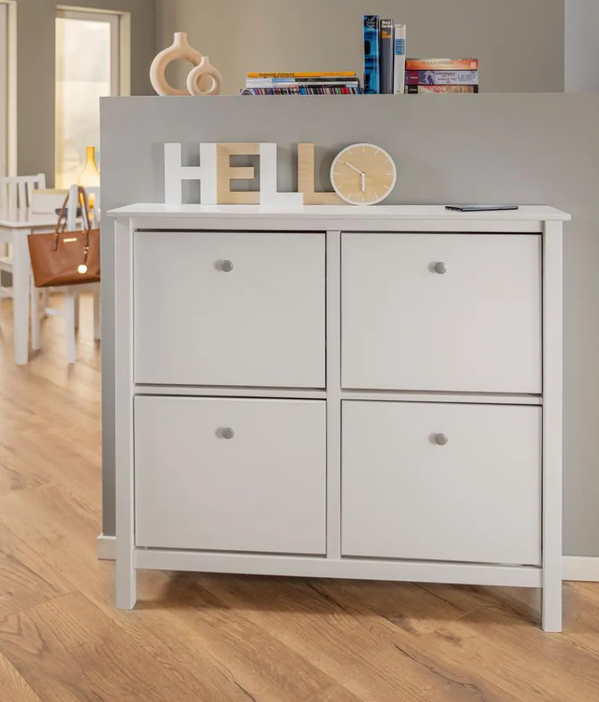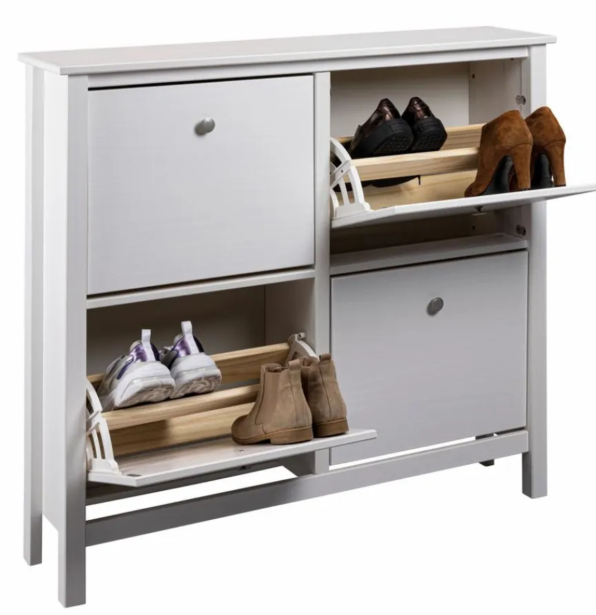 Mit dem Schuhkipper Chilly von Inter Link schaffen Sie Ordnung in Ihrem Vorzimmer und lassen frei herumstehende Fußbekleidung der Vergangenheit angehören. Dieser flache Schrank ist die ideale Lösung zur Aufbewahrung von Turnschuhen, Pumps, Sandalen, Halbschuhen, Hausschuhen usw., besonders wenn Sie wenig Platz haben. Unabhängig von Ihrem Einrichtungsstil ist der Schuhkipper Chilly in Ihrem Eingangsbereich einfach mit anderen Möbelstücken kombinierbar.