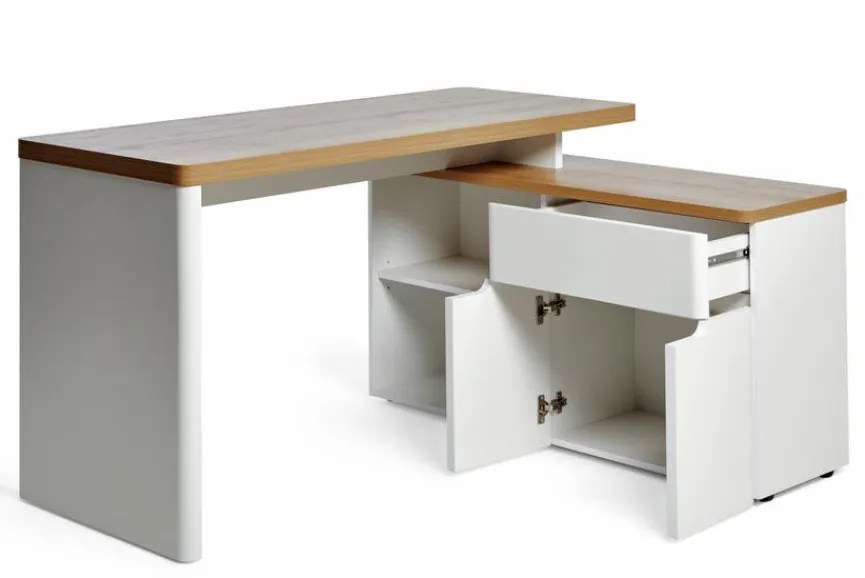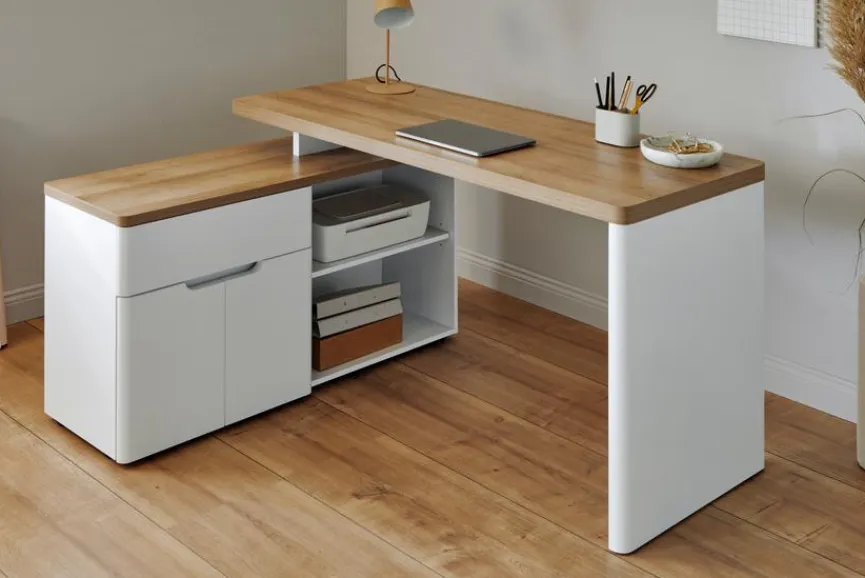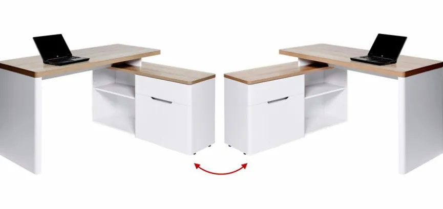 - Schreibtisch ist wechselseitig montierbar
