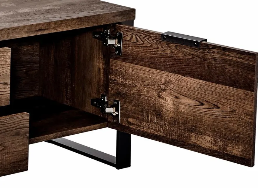 Für den modernen Wohnstil ist das TV-Lowboard Loop die perfekte Wahl. Das Gestell und die Griffe in Gun-Metall-Optik prägen den originellen Look dieses TV-Unterschrankes. Zudem bietet Ihnen das TV-Lowboard Loop nicht nur eine Abstellfläche für Ihr Fernsehgerät, sondern auch viel praktischen Stauraum für diverse Utensilien und Medienzubehör.