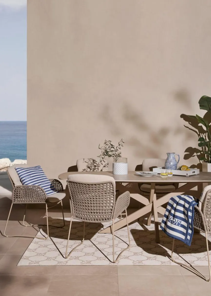 Mit dem Gartentisch Cross 240×105 cm von JOOP! lässt sich ein luxuriöses Esszimmer im Freien gestalten. Er vereint strapazierfähige Materialien mit einem exklusiven markentypischen Design. Dank seiner großzügigen Maße bietet der Gartentisch Cross 240×105 cm ausreichend Platz für gesellige Runden mit der Familie und mit Gästen.