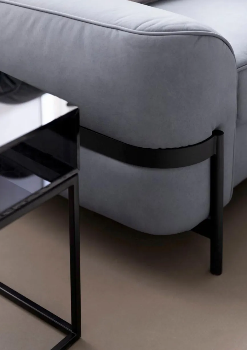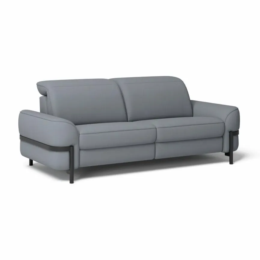 - Bezug aus Leder (Leonessa) in cool, Füße aus Metall anthrazit pulverbeschichtet