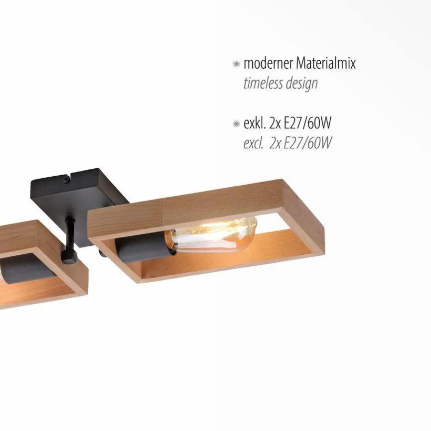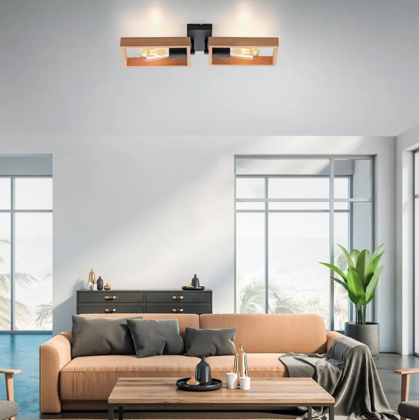 Mit der Deckenleuchte Frame aus dem Hause Leuchtendirekt erhalten Sie eine ausdrucksstarke Bereicherung für Ihre Zimmer. Die Deckenlampe besticht durch das klassisch anmutende Erscheinungsbild von der ersten Sekunde an. Ins Auge fällt die Deckenleuchte Frame zudem aufgrund der edlen Holzelemente, die die Leuchtmittel hübsch einrahmen.