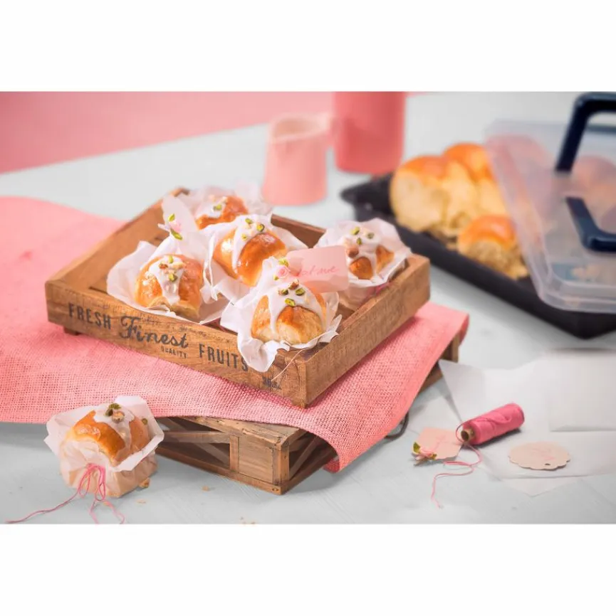 Mit der Backform 42×29 cm der Marke Kaiser gelingen innerhalb kürzester Zeit köstliche Kuchen und Tortenböden. Rührkuchen und weitere Backwaren lösen sich dank der Antihaftbeschichtung von ganz allein. Durch die hochwertige Abdeckung mit klappbarem Griff ist ein sicheres Transportieren der Backform 42×29 cm von Kaiser gegeben.