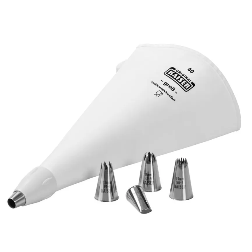 - Artikel beinhaltet 1x Spritzbeutel kochfest 40 cm, 1x Adapter und 5x Tüllen