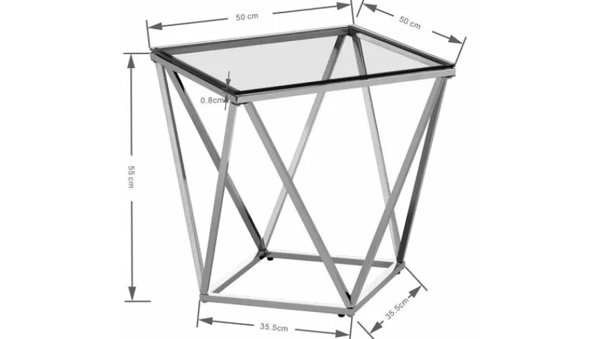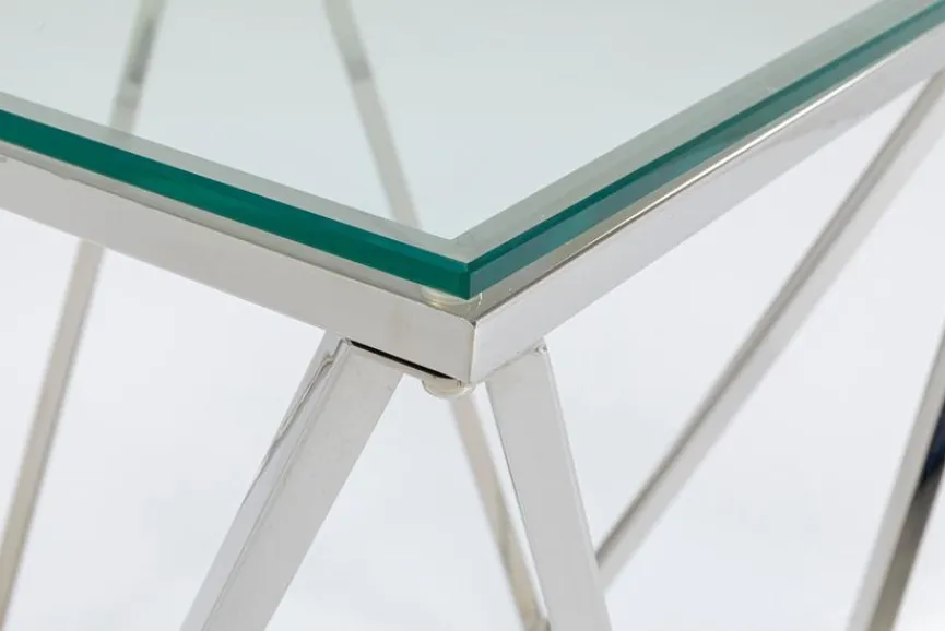 Der Beistelltisch 85031 Cristallo von KARE könnte aus einem Glaspalast stammen. Mit dem hochglanzpolierten Gestell und der Glastischplatte strahlt er kühle Eleganz aus. Das edle Design passt perfekt zu Hochglanzmöbeln in Ihrem Wohnzimmer. Alternativ bietet sich der Beistelltisch 85031 Cristallo von KARE mit quadratischer Tischplatte als Blickfang im Eingangsbereich an.