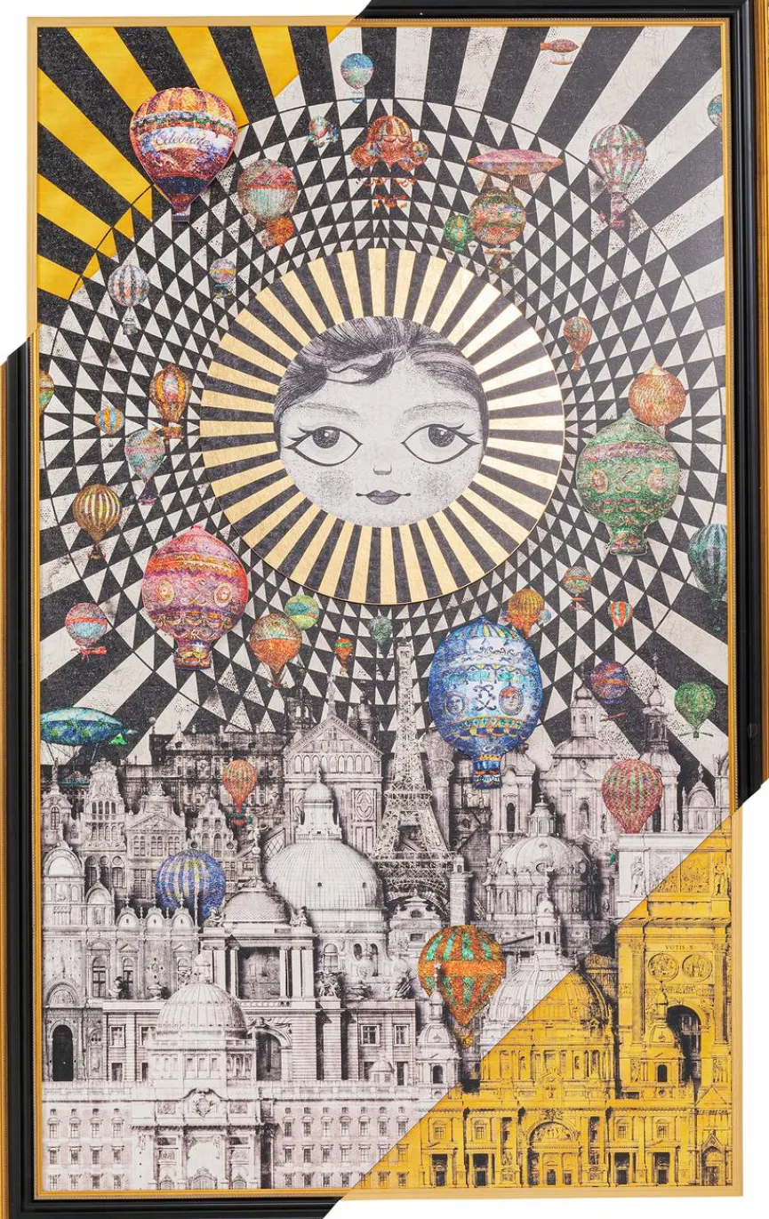 Die Kulisse einer südeuropäischen Stadt, ein Fotonegativ-Effekt in den gegenüberliegenden Ecken, eine beinahe skurrile Abbildung der Sonne und eine Fülle von bunten Heißluftballons – das Wandbild Balloons 52979 von KARE DESIGN hat es wirklich in sich. Kein Betrachter kann sich der Anziehungskraft dieses fulminanten Deko Bilds entziehen. Platzieren Sie das KARE DESIGN Wandbild Balloons 52979 an einer großzügigen, leeren Wand, so entfaltet es seine volle Wirkung.